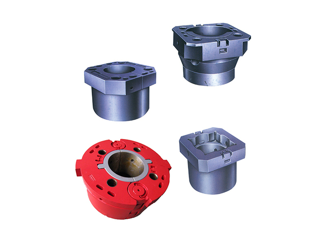 Master bushings and insert bowls sizing from 17.1/2 to 49.1/2inch. They are cast with high-quality alloy steel and the sizes conform to API Spec 7K. There are two types, pin drive and square drive. API standard rotary slips, drill collar slips, casing slips and roller kelly bushings can be contained in them.